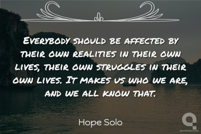 Everybody should be affected by their own realities in their own lives, their own struggles in their own lives. It makes us who we are, and we all know that.