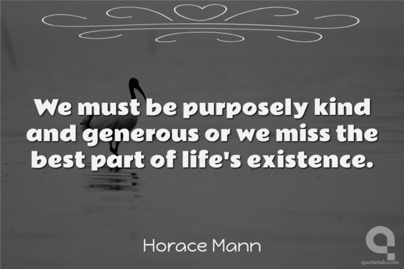 We must be purposely kind and generous or we miss the best part of life's existence.