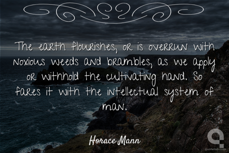 The earth flourishes, or is overrun with noxious weeds and brambles, as we apply or withhold the cultivating hand. So fares it with the intellectual system of man.