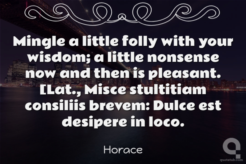 Mingle a little folly with your wisdom; a little nonsense now and then is pleasant. [Lat., Misce stultitiam consiliis brevem: Dulce est desipere in loco.