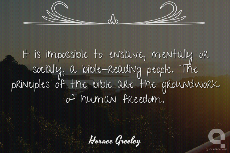 It is impossible to enslave, mentally or socially, a bible-reading people. The principles of the bible are the groundwork of human freedom.