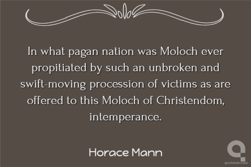 In what pagan nation was Moloch ever propitiated by such an unbroken and swift-moving procession of victims as are offered to this Moloch of Christendom, intemperance.