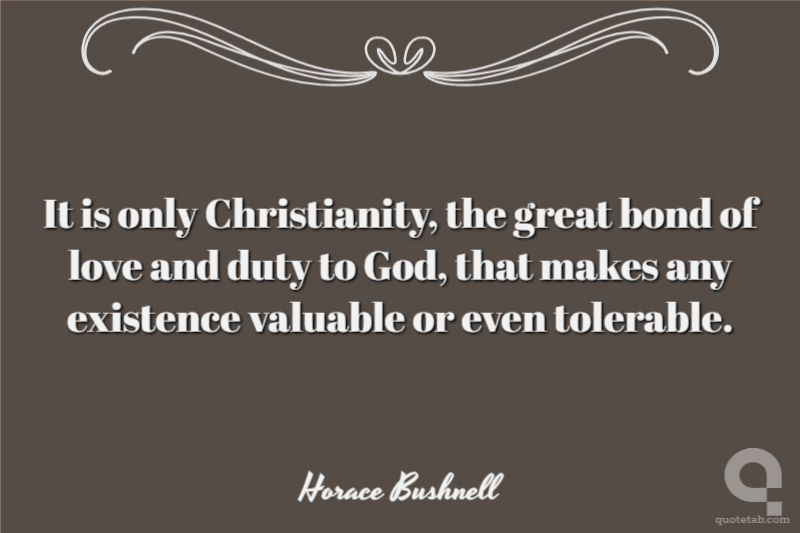 It is only Christianity, the great bond of love and duty to God, that makes any existence valuable or even tolerable.