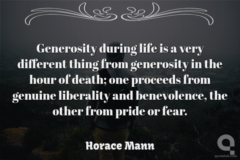 Generosity during life is a very different thing from generosity in the hour of death; one proceeds from genuine liberality and benevolence, the other from pride or fear.