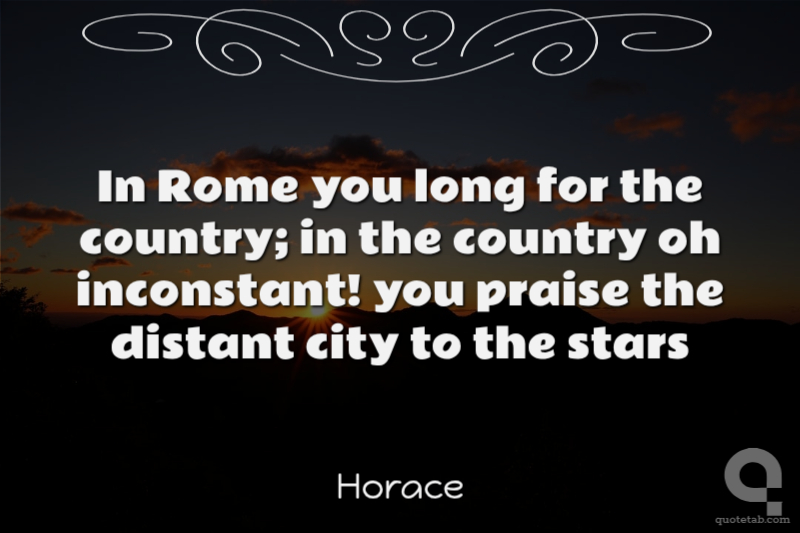 In Rome you long for the country; in the country oh inconstant! you praise the distant city to the stars