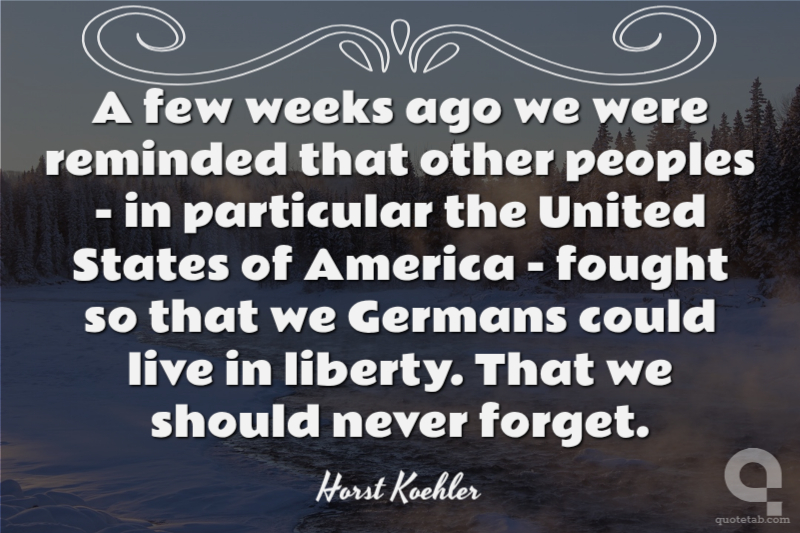 A few weeks ago we were reminded that other peoples - in particular the United States of America - fought so that we Germans could live in liberty. That we should never forget.