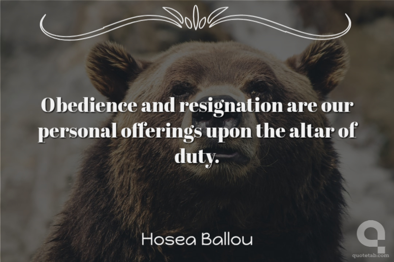 Obedience and resignation are our personal offerings upon the altar of duty.