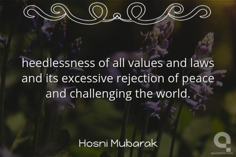 heedlessness of all values and laws and its excessive rejection of peace and challenging the world.