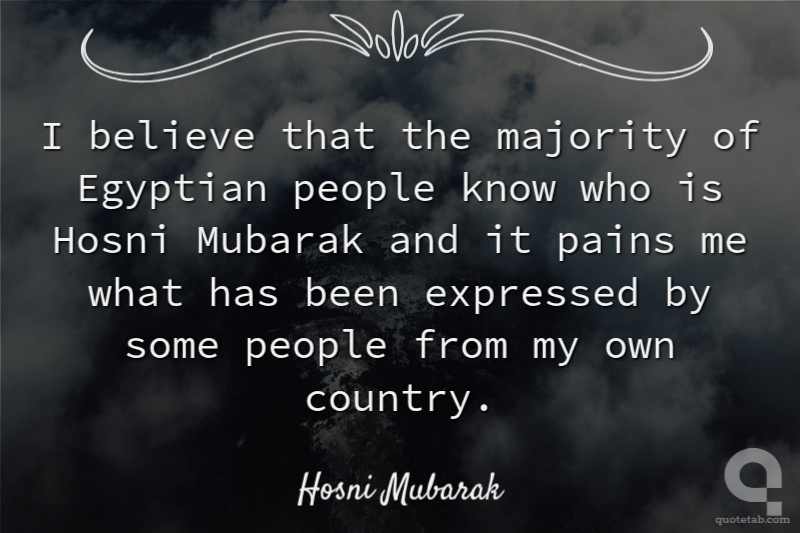 I believe that the majority of Egyptian people know who is Hosni Mubarak and it pains me what has been expressed by some people from my own country.