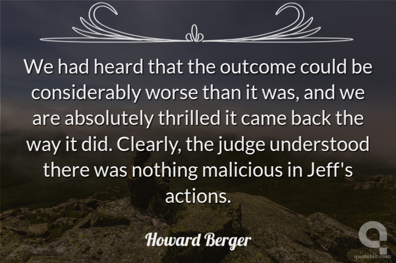 We had heard that the outcome could be considerably worse than it was, and we are absolutely thrilled it came back the way it did. Clearly, the judge understood there was nothing malicious in Jeff's actions.