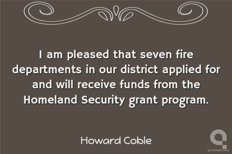 I am pleased that seven fire departments in our district applied for and will receive funds from the Homeland Security grant program.