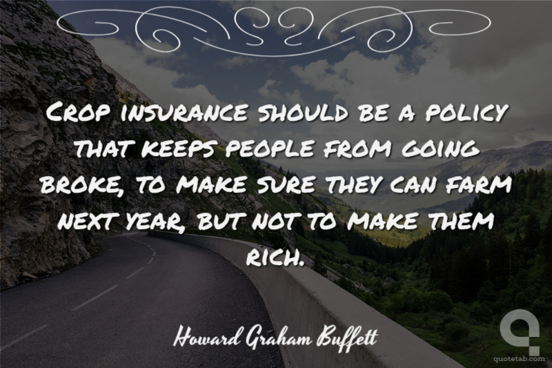 Crop insurance should be a policy that keeps people from going broke, to make sure they can farm next year, but not to make them rich.