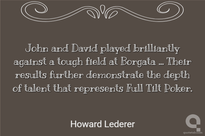 John and David played brilliantly against a tough field at Borgata ... Their results further demonstrate the depth of talent that represents Full Tilt Poker.