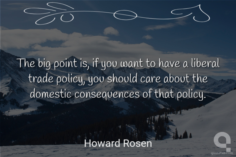 The big point is, if you want to have a liberal trade policy, you should care about the domestic consequences of that policy.