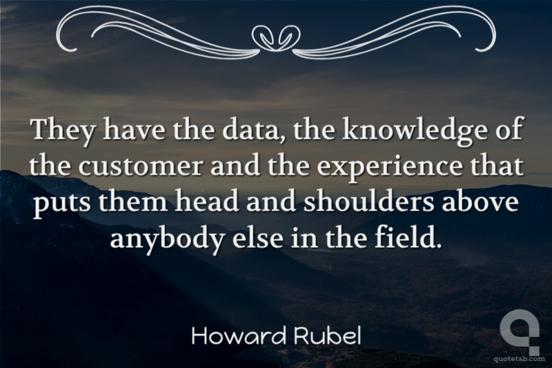 They have the data, the knowledge of the customer and the experience that puts them head and shoulders above anybody else in the field.