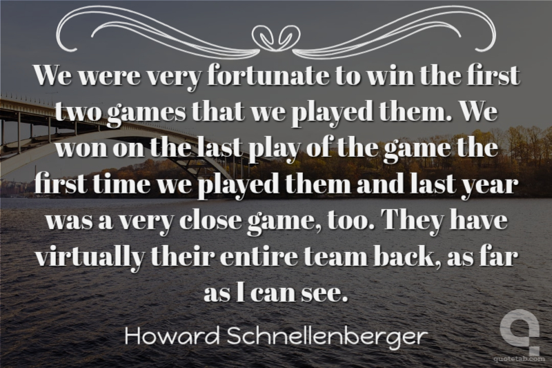 We were very fortunate to win the first two games that we played them. We won on the last play of the game the first time we played them and last year was a very close game, too. They have virtually their entire team back, as far as I can see.