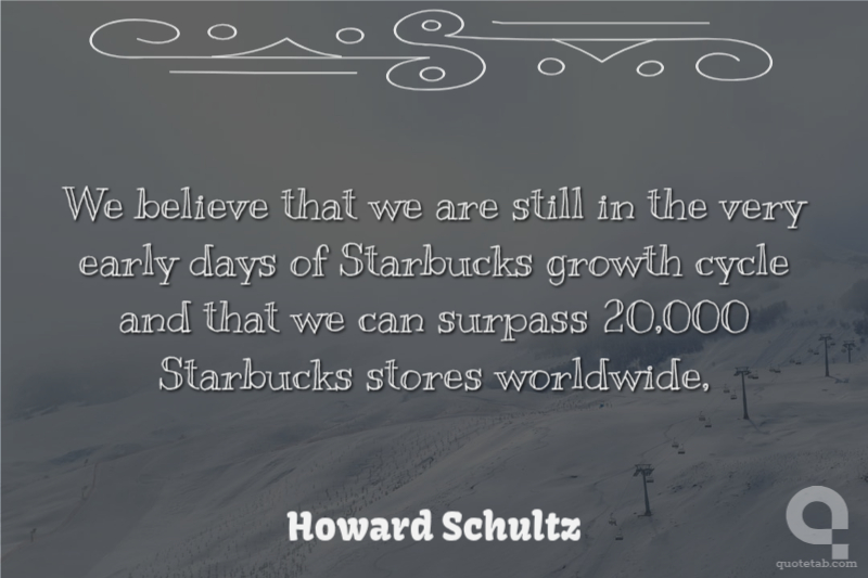We believe that we are still in the very early days of Starbucks growth cycle and that we can surpass 20,000 Starbucks stores worldwide,
