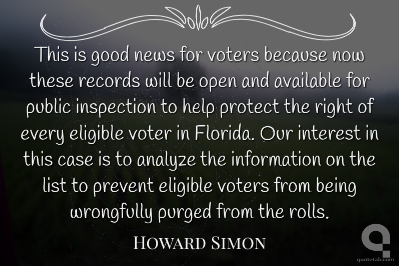 This is good news for voters because now these records will be open and available for public inspection to help protect the right of every eligible voter in Florida. Our interest in this case is to analyze the information on the list to prevent eligible voters from being wrongfully purged from the rolls.
