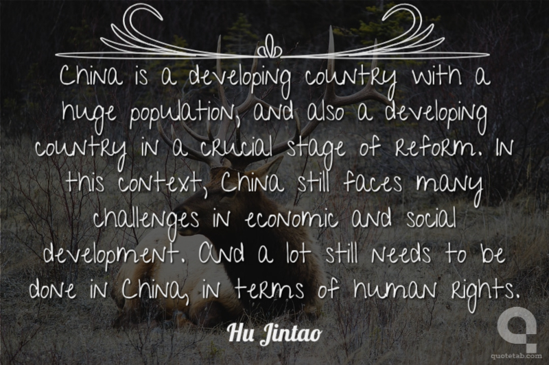 China is a developing country with a huge population, and also a developing country in a crucial stage of reform. In this context, China still faces many challenges in economic and social development. And a lot still needs to be done in China, in terms of human rights.