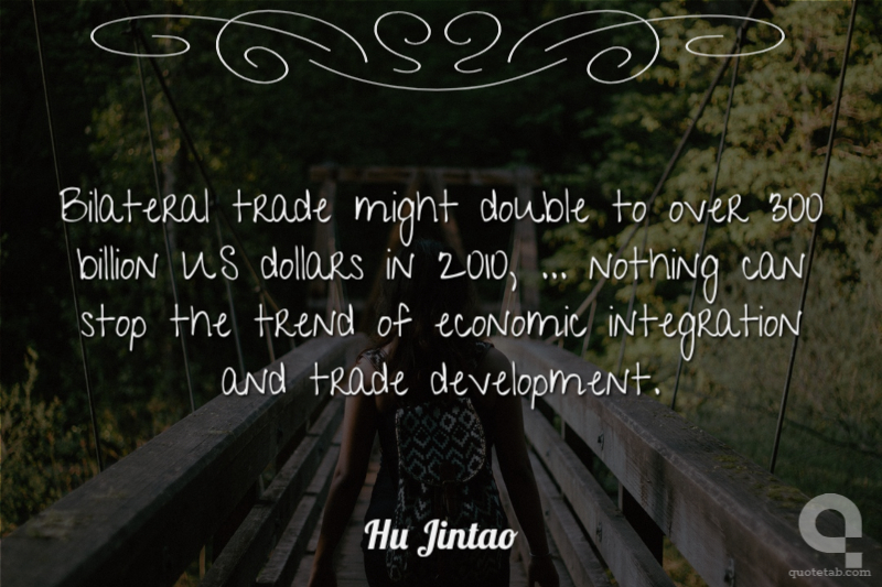 Bilateral trade might double to over 300 billion US dollars in 2010, ... nothing can stop the trend of economic integration and trade development.