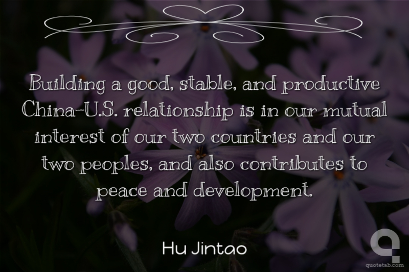 Building a good, stable, and productive China-U.S. relationship is in our mutual interest of our two countries and our two peoples, and also contributes to peace and development.