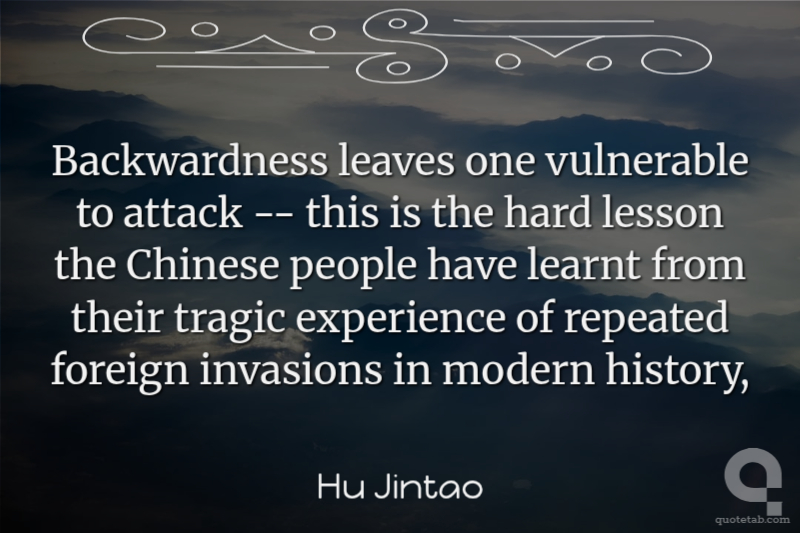 Backwardness leaves one vulnerable to attack -- this is the hard lesson the Chinese people have learnt from their tragic experience of repeated foreign invasions in modern history,