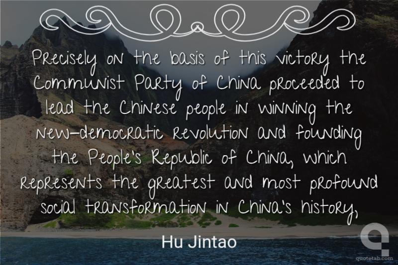 Precisely on the basis of this victory the Communist Party of China proceeded to lead the Chinese people in winning the new-democratic revolution and founding the People's Republic of China, which represents the greatest and most profound social transformation in China's history,