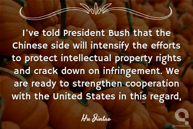I've told President Bush that the Chinese side will intensify the efforts to protect intellectual property rights and crack down on infringement. We are ready to strengthen cooperation with the United States in this regard,