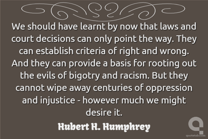 We should have learnt by now that laws and court decisions can only point the way. They can establish criteria of right and wrong. And they can provide a basis for rooting out the evils of bigotry and racism. But they cannot wipe away centuries of oppression and injustice - however much we might desire it.