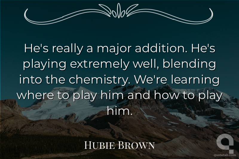 He's really a major addition. He's playing extremely well, blending into the chemistry. We're learning where to play him and how to play him.