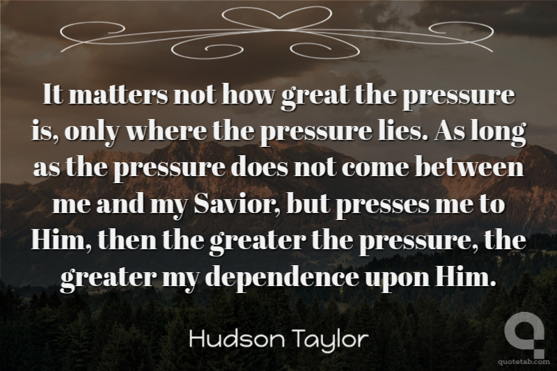 It matters not how great the pressure is, only where the pressure lies. As long as the pressure does not come between me and my Savior, but presses me to Him, then the greater the pressure, the greater my dependence upon Him.
