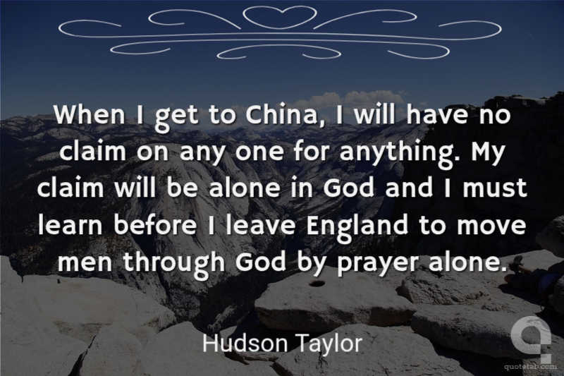 When I get to China, I will have no claim on any one for anything. My claim will be alone in God and I must learn before I leave England to move men through God by prayer alone.