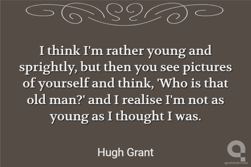 I think I'm rather young and sprightly, but then you see pictures of yourself and think, 'Who is that old man?' and I realise I'm not as young as I thought I was.