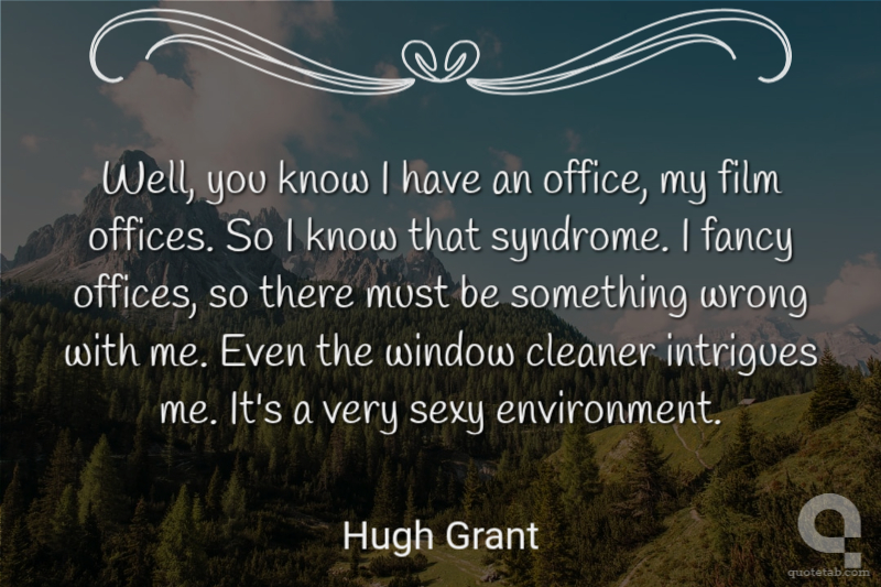 Well, you know I have an office, my film offices. So I know that syndrome. I fancy offices, so there must be something wrong with me. Even the window cleaner intrigues me. It's a very sexy environment.