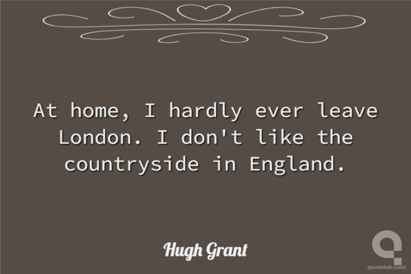 At home, I hardly ever leave London. I don't like the countryside in England.