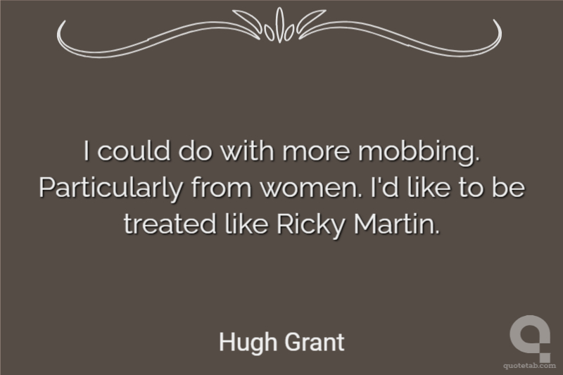 I could do with more mobbing. Particularly from women. I'd like to be treated like Ricky Martin.