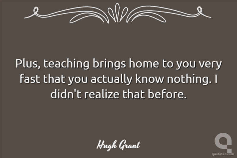 Plus, teaching brings home to you very fast that you actually know nothing. I didn't realize that before.