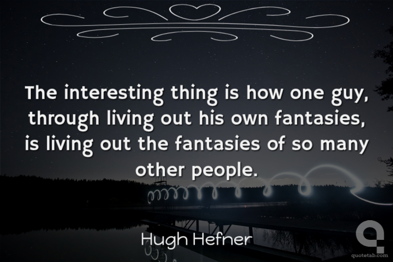 The interesting thing is how one guy, through living out his own fantasies, is living out the fantasies of so many other people.
