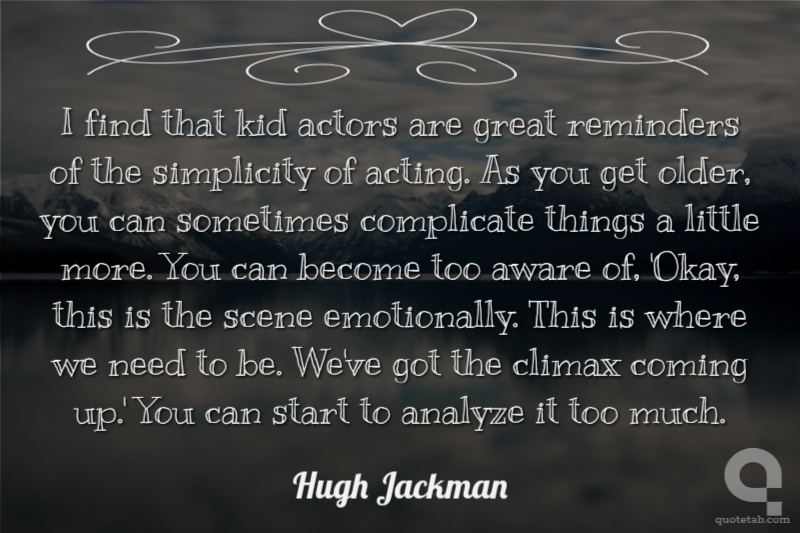 I find that kid actors are great reminders of the simplicity of acting. As you get older, you can sometimes complicate things a little more. You can become too aware of, 'Okay, this is the scene emotionally. This is where we need to be. We've got the climax coming up.' You can start to analyze it too much.
