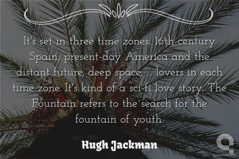 It's set in three time zones: 16th-century Spain, present-day America and the distant future, deep space, ... lovers in each time zone. It's kind of a sci-fi love story. The Fountain refers to the search for the fountain of youth.
