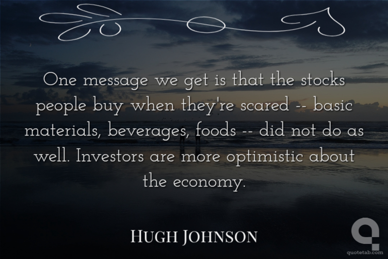 One message we get is that the stocks people buy when they're scared -- basic materials, beverages, foods -- did not do as well. Investors are more optimistic about the economy.
