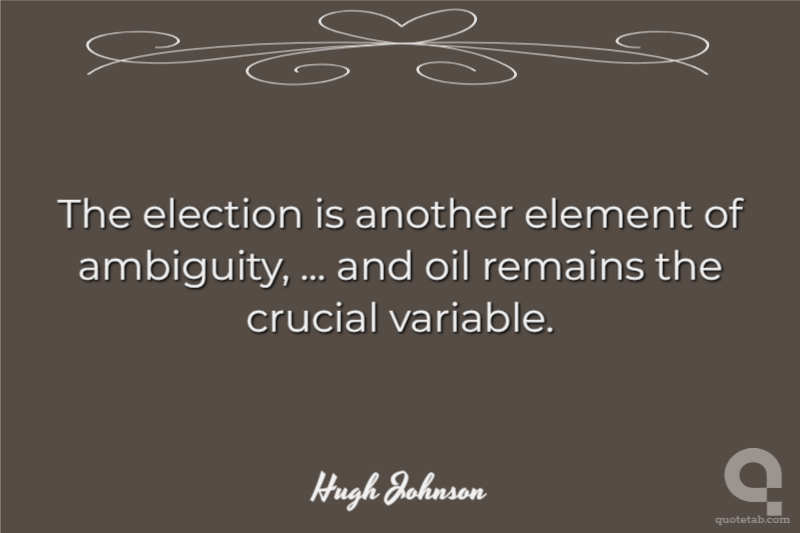 The election is another element of ambiguity, ... and oil remains the crucial variable.
