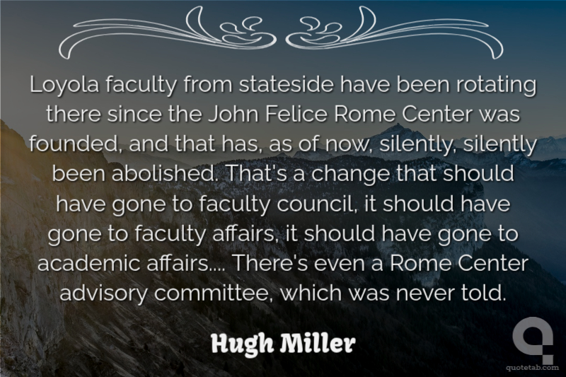 Loyola faculty from stateside have been rotating there since the John Felice Rome Center was founded, and that has, as of now, silently, silently been abolished. That's a change that should have gone to faculty council, it should have gone to faculty affairs, it should have gone to academic affairs.... There's even a Rome Center advisory committee, which was never told.