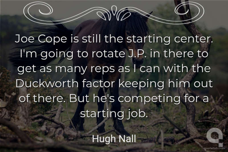 Joe Cope is still the starting center. I'm going to rotate J.P. in there to get as many reps as I can with the Duckworth factor keeping him out of there. But he's competing for a starting job.