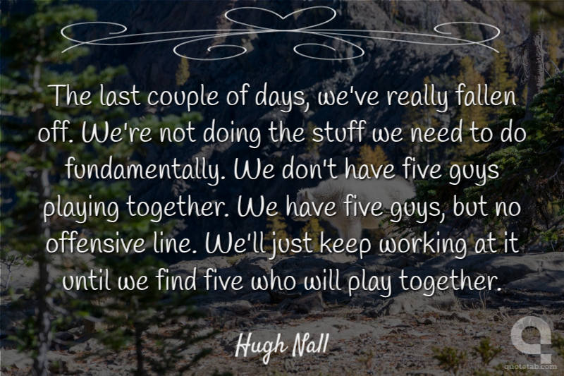 The last couple of days, we've really fallen off. We're not doing the stuff we need to do fundamentally. We don't have five guys playing together. We have five guys, but no offensive line. We'll just keep working at it until we find five who will play together.