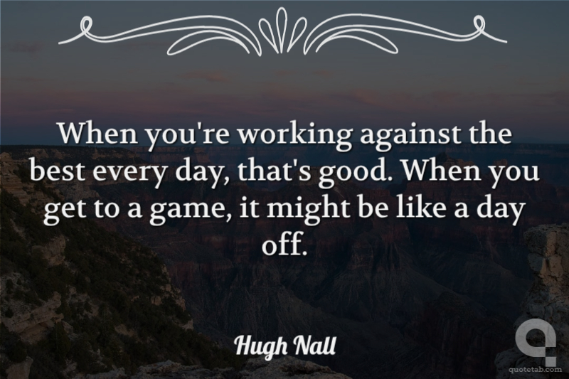 When you're working against the best every day, that's good. When you get to a game, it might be like a day off.