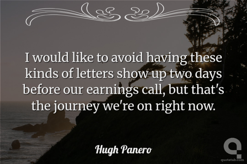 I would like to avoid having these kinds of letters show up two days before our earnings call, but that's the journey we're on right now.
