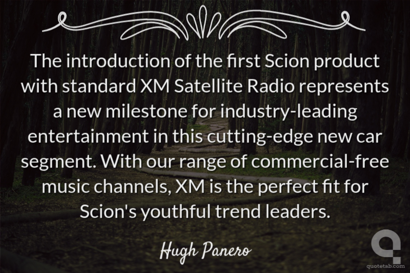 The introduction of the first Scion product with standard XM Satellite Radio represents a new milestone for industry-leading entertainment in this cutting-edge new car segment. With our range of commercial-free music channels, XM is the perfect fit for Scion's youthful trend leaders.