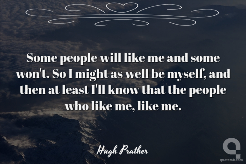 Some people will like me and some won't. So I might as well be myself, and then at least I'll know that the people who like me, like me.