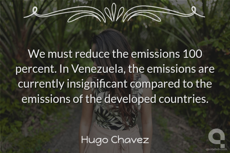 We must reduce the emissions 100 percent. In Venezuela, the emissions are currently insignificant compared to the emissions of the developed countries.